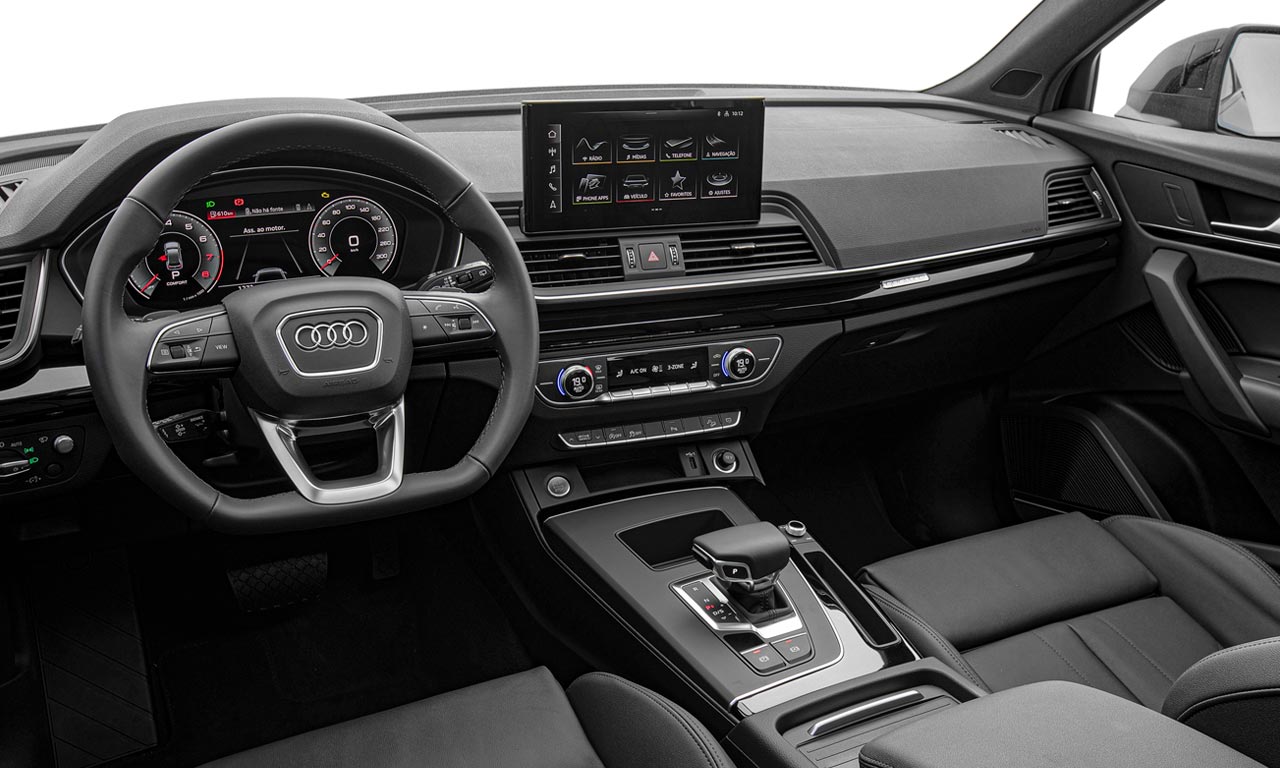 O Audi Q5 Sportback é vendido nas versões S Line (R$ 369.990) e S Line Black (R$ 395.990), aqui avaliada. Desde a de entrada, a lista de itens de série traz ar-condicionado digital de três zonas, quadro de instrumentos digital, rodas de 19”, faróis full LED Matrix, teto solar panorâmico, ajustes elétricos para os bancos dianteiros e controle de cruzeiro adaptativo.