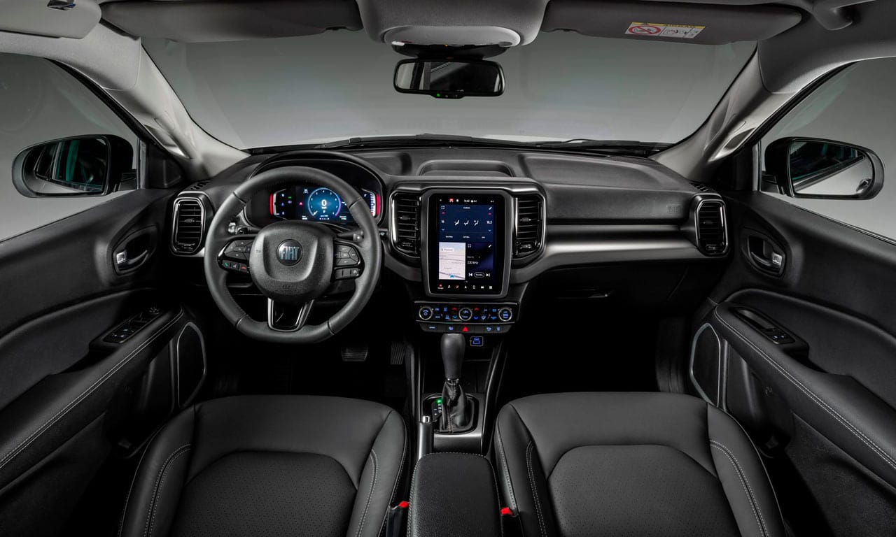 Opcionalmente, a Fiat Toro 2022 pode ser equipada com os pacotes Tecnologia (com multimídia de 10,1”, frenagem autônoma de emergência e alerta de mudança involuntária de faixa com correção do volante), por R$ 3 mil, ou Tecnologia Plus (que mantém os itens do pack Tecnologia e acrescenta teto solar), por R$ 7 mil.
