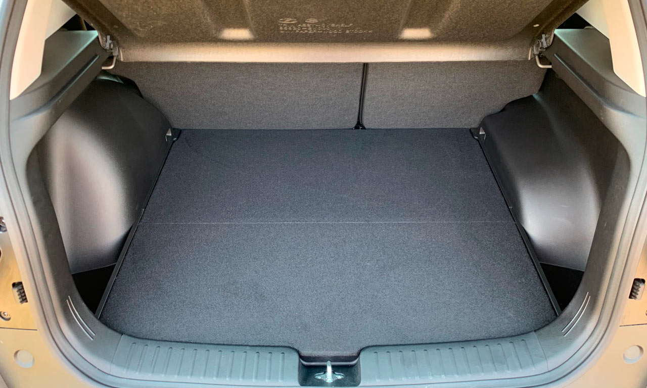 O espaço para ocupantes continua bom na dianteira e traseira, com destaque para a área para os ombros e joelhos dos ocupantes na segunda fileira de bancos. Apesar do maior porte em comprimento, o porta-malas teve redução no volume, passando de 431 litros no antigo para 422 l neste novo modelo (9 litros a menos). Mesmo com assoalho alto do compartimento de cargas, o estepe é do tipo temporário (medidas 155/90R16) em todas as versões do novo Creta.
