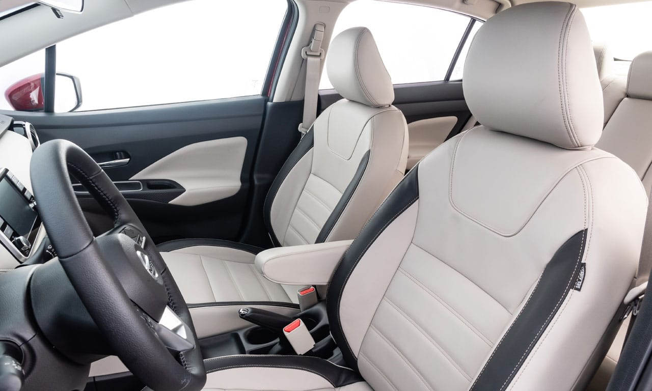 Desde a configuração básica, o Versa traz controles de estabilidade e tração, assistente de saída em rampas, 6 airbags, chave presencial, partida do motor por botão e sensor de estacionamento traseiro. Na opção avaliada, a topo de linha Exclusive, a lista é composta ainda por faróis em LED, ar-condicionado digital, frenagem autônoma de emergência, alerta de tráfego traseiro cruzado, sensor de pontos cegos, alerta de esquecimento de crianças ou objetos no banco traseiro, sistema de câmeras 360º, bancos em couro e rodas de 17″.