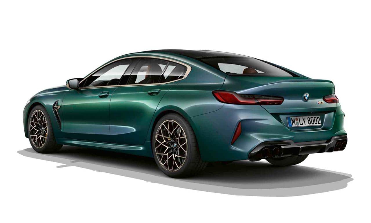 Baseado no M8 Gran Coupé Competition, o modelo traz a exclusiva pintura “Aurora Diamant Green”, detalhes externos na cor dourada e acabamento interno em fibra de carbono. Os faróis possuem iluminação a laser e detalhes na cor amarela.