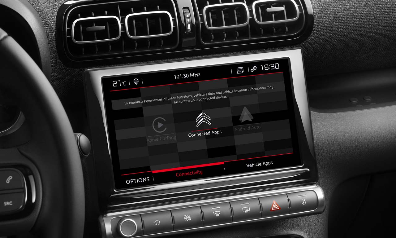 Na cabine, o Citroën C3 Aircross 2022 ganhou nova multimídia com tela de 9” e compatibilidade com Android Auto e Apple CarPlay, novo console central com mais porta-objetos e head-up display. O crossover também passa a ter controle automático de descida e seletor de modos de tração dianteira (Grip Control), como no C4 Cactus nacional.  O C3 Aircross europeu possui ainda sistema de frenagem autônoma de emergência, farol alto com facho automático e leitor de placas de velocidade. Graças ao banco traseiro com trilhos, o porta-malas possui capacidade entre 410 e 520 litros.