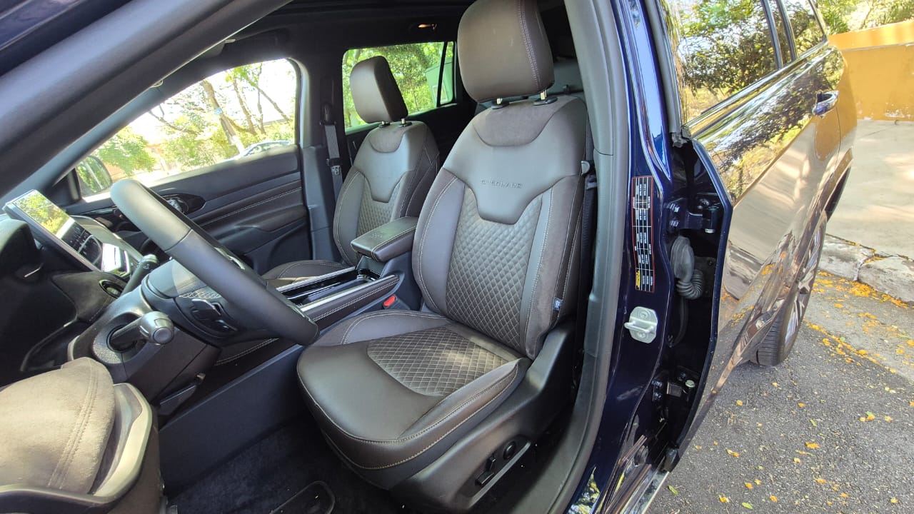 Vale lembrar que o interior não sofreu alterações em relação à linha anterior. Inclusive, o painel digital e a multimídia permitem a personalização das informações exibidas. O veículo conta com espelhamento sem fio, Bluetooth, rádio e comandos integrados. O freio de estacionamento é eletrônico e os retrovisores possuem função fotocrômica. O Commander mantém acabamento com materiais combinados, incluindo couro e soft touch, além de detalhes cromados definidos como Setting Chrome pela fabricante.