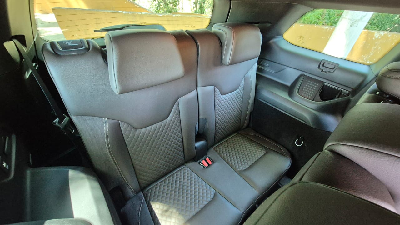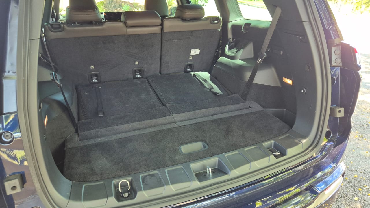 O Jeep Commander Overland 2025 mantém o mesmo design da linha anterior, com mudanças restritas às rodas aro 19 na cor grafite, com pneus Pirelli Scorpion. A versão de sete lugares oferece teto solar, bancos de couro, painel digital de 10,2 polegadas e sistema multimídia de 10 polegadas com espelhamento sem fio e navegação offline, além de câmera de ré, que traz boa resolução, só que está distante dos chineses no quesito imagem. O porta-malas tem capacidade de 661 litros com todos os assentos em uso e pode ser expandido com o rebatimento da terceira fileira. A abertura e o fechamento do porta-malas são elétricos. Entre os equipamentos de série, destacam-se carregador por indução, ar digital dual zone e pacote ADAS nível 2, com alerta de ponto cego, manutenção de distância do veículo à frente e frenagem automática.