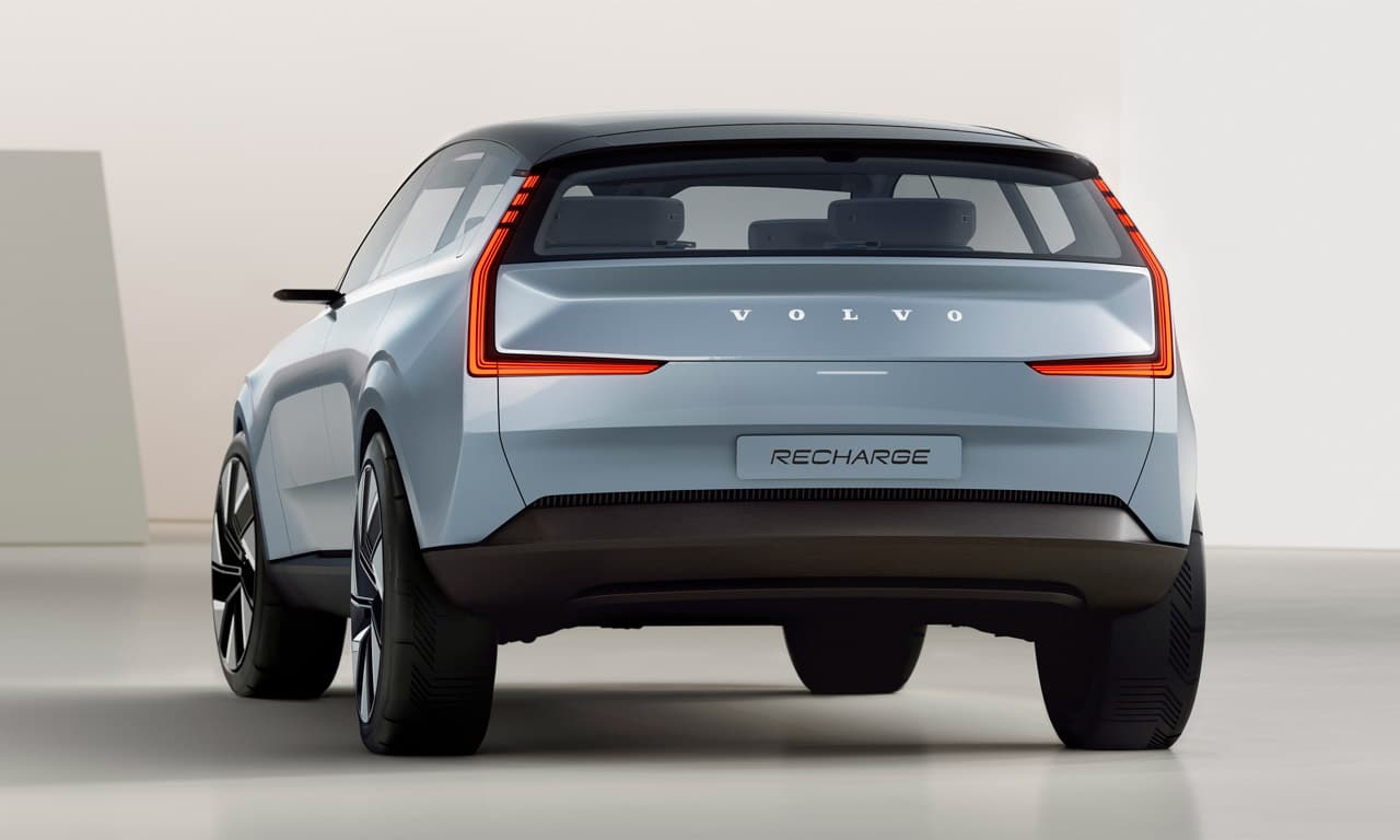 Apesar dos elementos típicos de protótipos, como as rodas de grande diâmetro e portas traseiras “suicidas” (que abrem em sentido oposto), o Concept Recharge exibe uma evolução da atual linguagem de design da Volvo. Prova disso é a manutenção dos faróis com luzes em forma de “martelo de Thor” e das lanternas verticais em formato de “L”. A marca batiza a filosofia de “menos, mas melhor”.