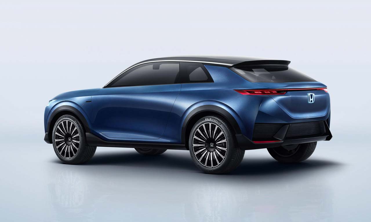 O Honda SUV e:concept inaugura a nova linguagem visual da marca, com traços predominantemente retilíneos. Os faróis são bastante afilados e iluminados por LED, mesmo material utilizado no friso da grade e no logotipo da marca. A junção entre capô e para-choque forma um ângulo de quase 90°.