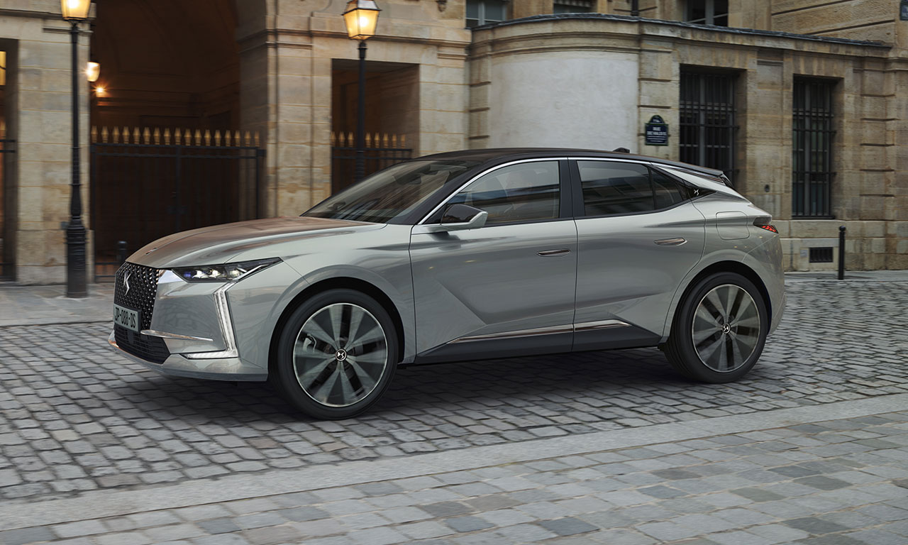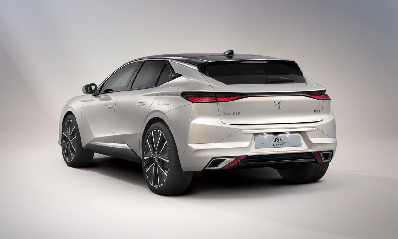 O novo DS 4 mistura elementos de DS 3 Crossback e DS 7 Crossback, com múltiplos vincos por toda a carroceria, conjunto ótico afilado (na dianteira e traseira) e teto na cor preta. Os faróis possuem tecnologia Matrix e possuem um prolongamento com as luzes de rodagem diurna no para-choque – ao todo, 98 LEDs compõem o sistema de iluminação frontal.