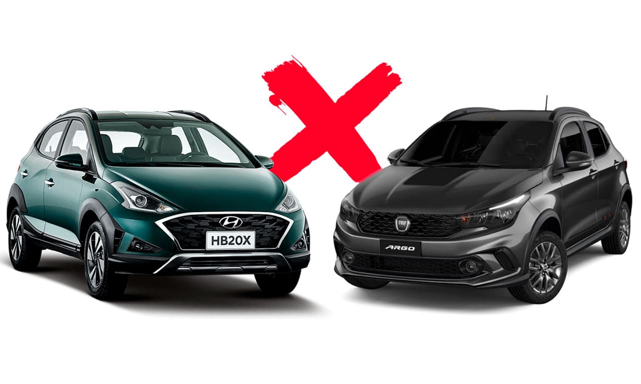 Na análise de dimensões, o HB20X supera o Argo em largura (1.740 mm x 1.724 mm), altura (1.540 x 1.507) e distância entre eixos (2.530 x 2.521). O Fiat fica à frente do Hyundai apenas no comprimento total (3.998 x 3.970). O vão livre do solo é de 210 mm no Argo e 211 mm, no HB20X. Ambos empatam em capacidade do porta-malas, com 300 litros cada.