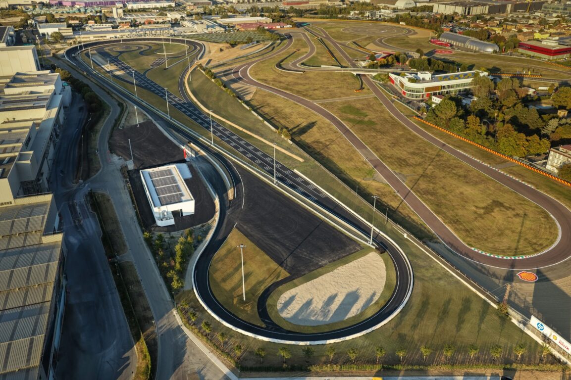 O composto que reveste o piso do circuito foi desenvolvido internamente pela Ferrari, permitindo avaliar com precisão parâmetros de conforto e desempenho, incluindo ruído, vibração e aspereza (NVH).