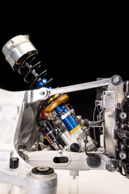 Outra novidade da nova plataforma é a suspensão ativa de terceira geração, que utiliza novos amortecedores mais leves e controle independente de forças verticais em cada roda. Há ainda vetorização de torque individual, melhorando a precisão e estabilidade.