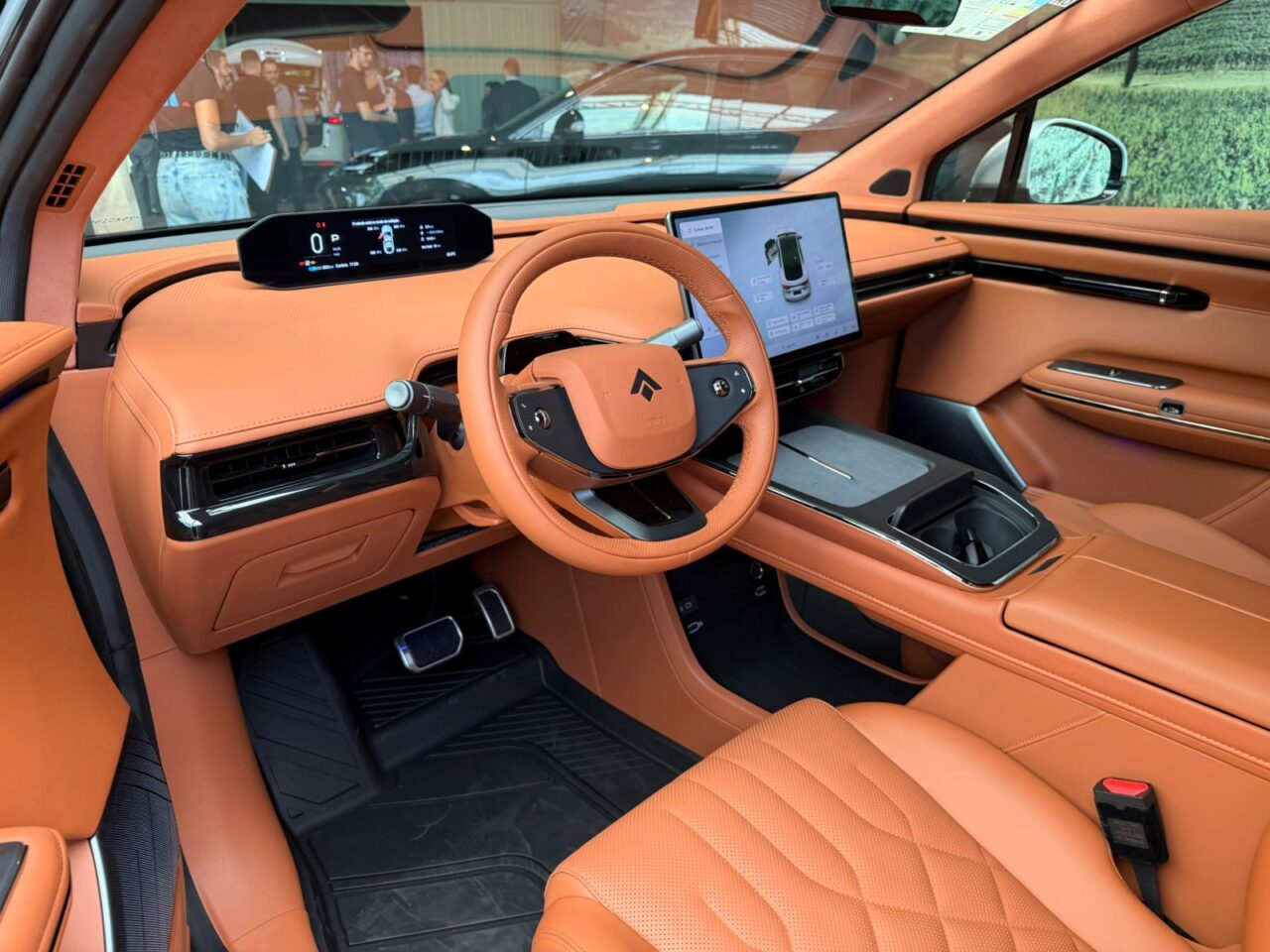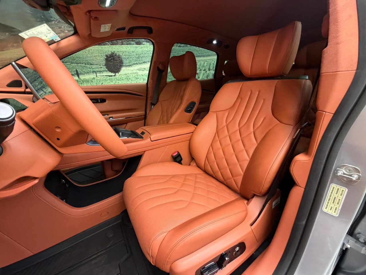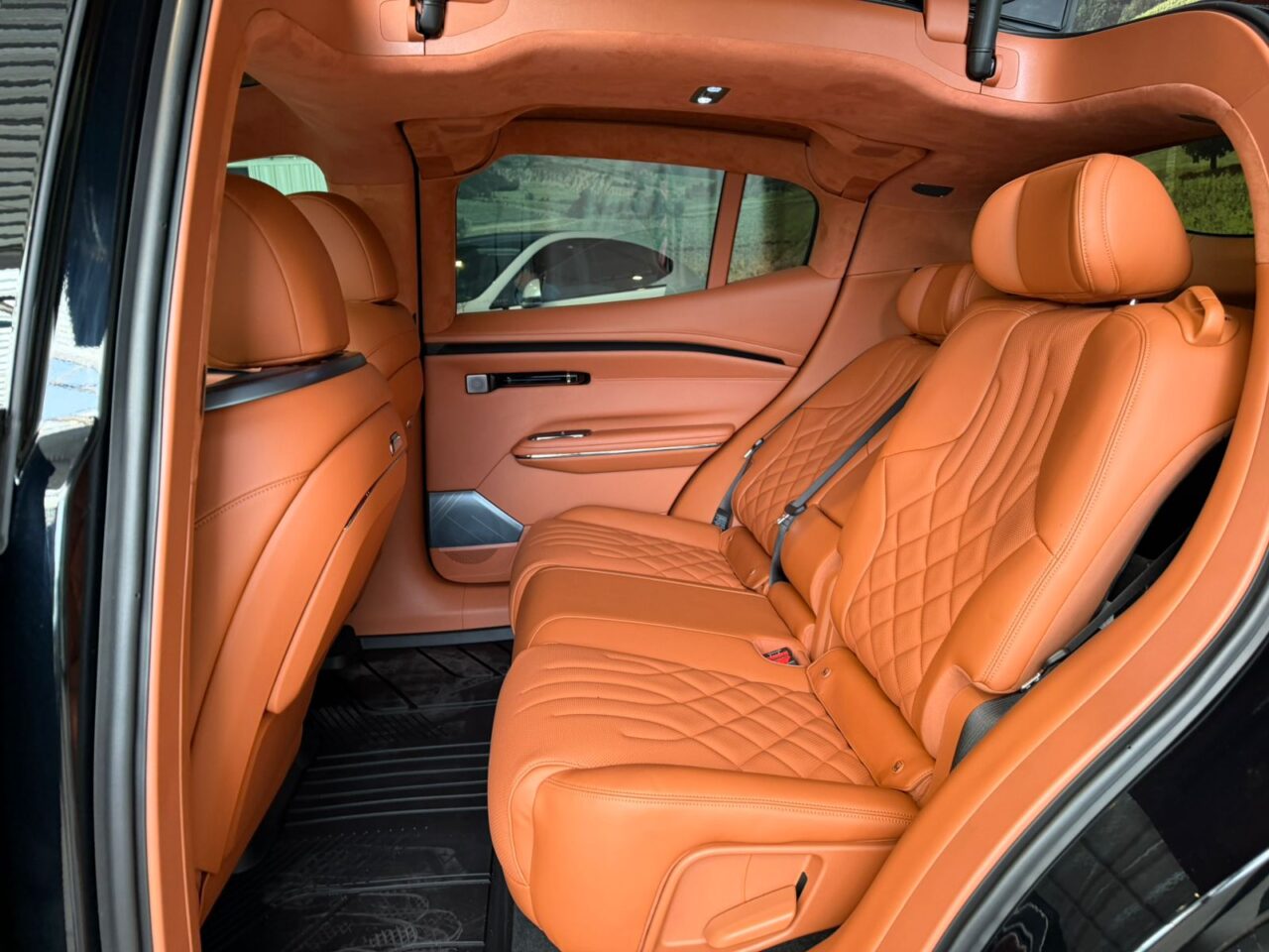 O acabamento inclui bancos com revestimento em couro Nappa, ajustes elétricos amplos e funções de ventilação, aquecimento e massagem nos assentos dianteiros. Na traseira, o encosto é reclinável em até 143°. O modelo ainda conta com iluminação ambiente configurável e sistema de climatização automática.