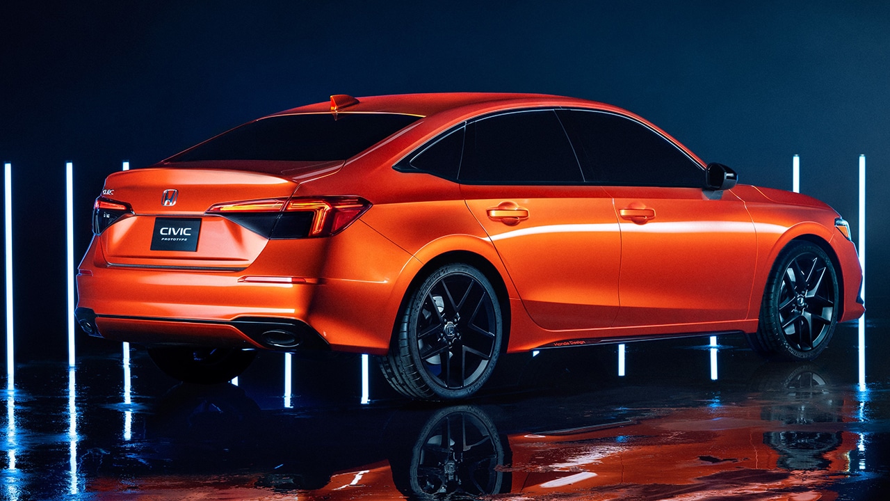 A traseira guarda poucas semelhanças com o atual Civic. As lanternas passam a ter disposição horizontal, enquanto a tampa do porta-malas ficou mais alta e horizontal e o vidro traseiro, menor. Isso devolve ao Civic o aspecto clássico de sedã, em substituição ao estilo fastback da geração atual.