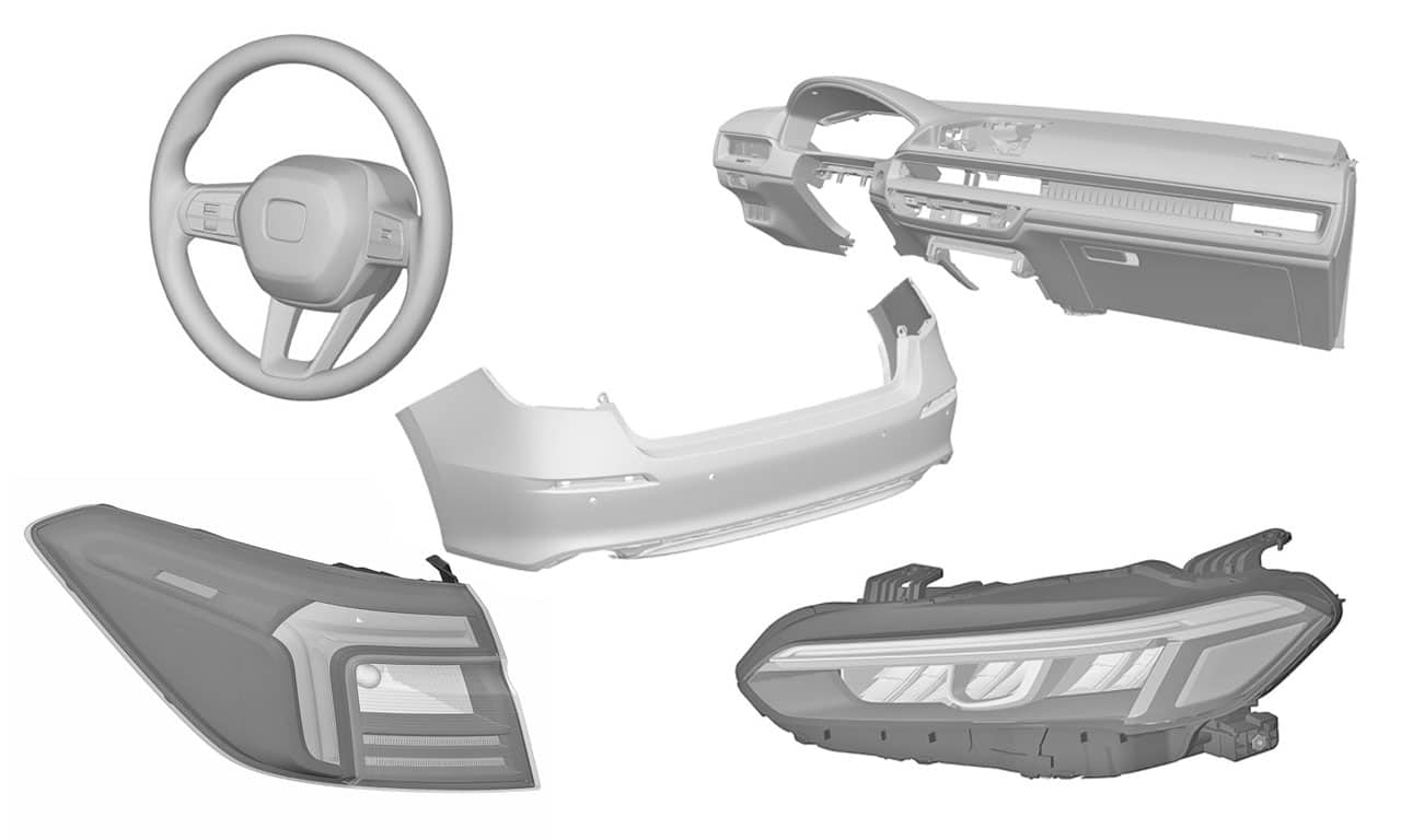 Ainda não revelada em versão final de produção, a nova geração do Honda Civic já começa a ter os desenhos de peças registrados no Brasil. É o que mostram imagens de registro de desenho industrial divulgadas pelo Instituto Nacional da Propriedade Industrial (INPI) nesta terça-feira (2).