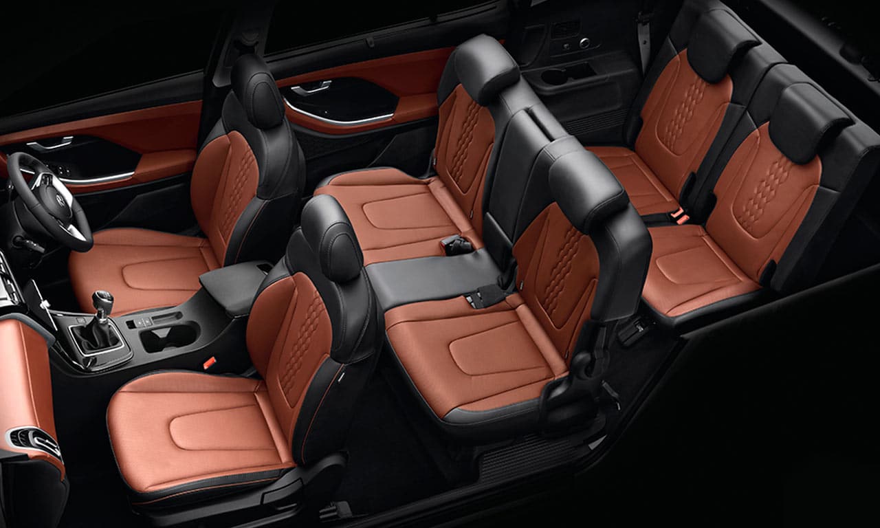 O modelo pode ter configuração interna para seis (com bancos individuais para todos) ou 7 lugares. Na segunda fileira de bancos, o Alcazar traz carregador de celular por indução integrado ao descansa-braço (6 lugares) e sistema de rebatimento inteligente para acesso à terceira fileira, que conta com duas entradas USB e saídas de ventilação dedicadas. Com todos os bancos em uso, a capacidade do porta-malas é de 180 litros.
