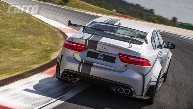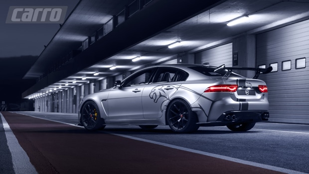 O visual de arrepiar e de carro de corrida exibe novos para-choques, difusor dianteiro regulável, novas tomadas de ar e um aerofólio gigante sobre a tampa do porta-malas. As belas rodas de 20” são as maiores já empregadas em um sedã da Jaguar e elas deixam à mostra o novo sistema de Freios de Carbono Cerâmica. O diferencial está na utilização de rolamentos de roda de cerâmica feitos de nitreto de silício, inspirado na F1.