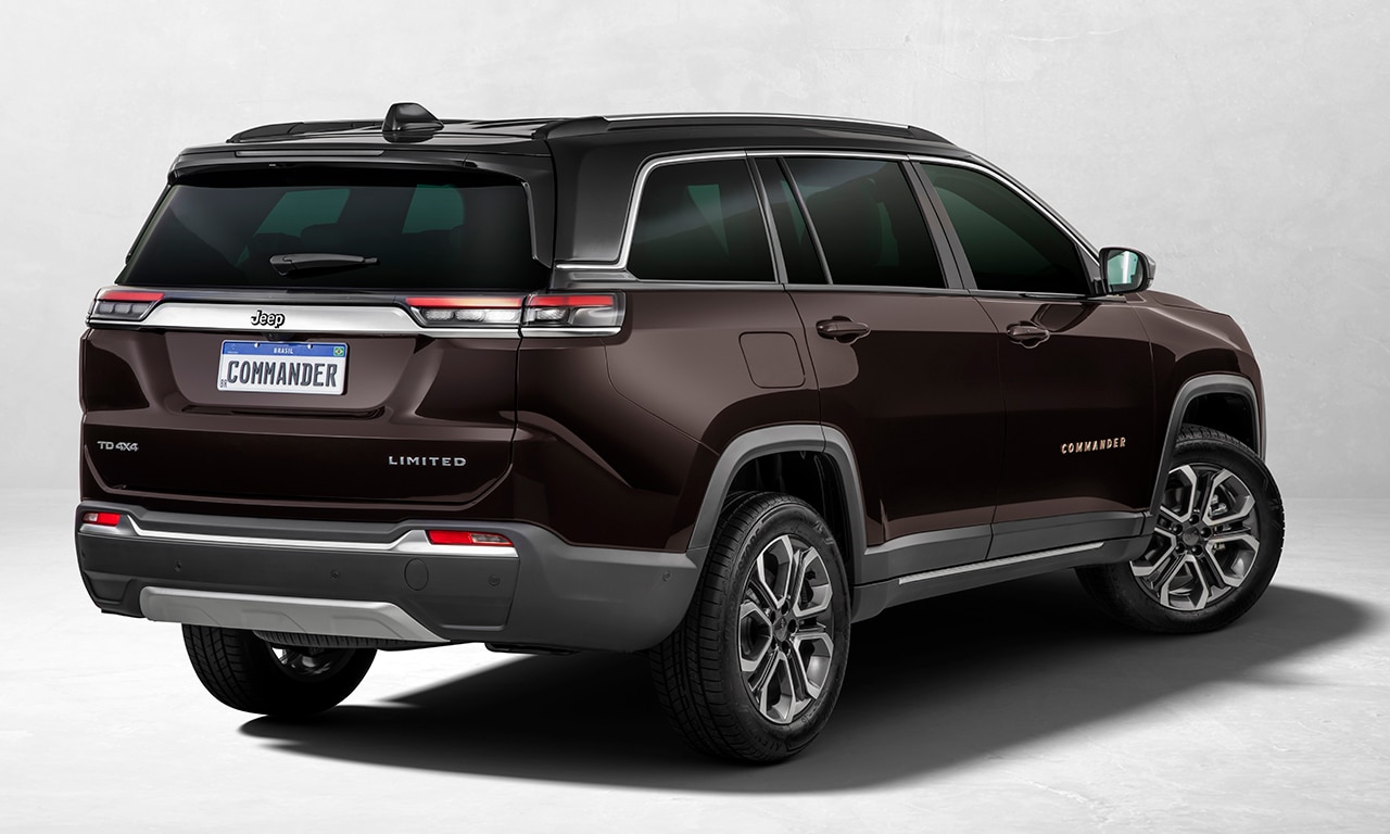 Já na traseira, o modelo pouco se assemelha ao Compass, com lanternas em LED afiladas unidas por uma barra cromada – mais uma vez, a inspiração vem do Wagoneer e da nova geração do Grand Cherokee L. As rodas terão desenhos diferenciados em cada versão de acabamento, calçadas em pneus de medidas 235/55 R18 na Limited ou 235/50 R19 na Overland.