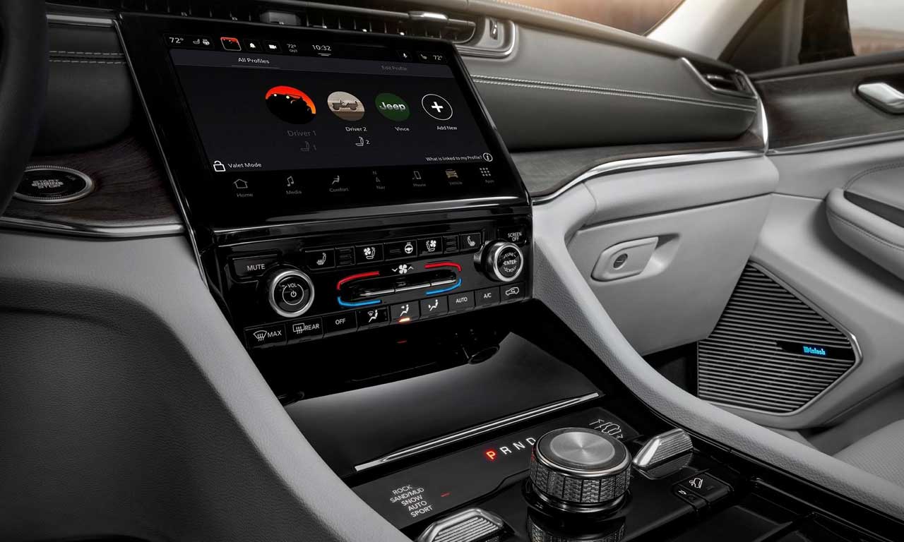 Sob o capô, a Jeep mantém a oferta dos motores 3.6 V6 de 294 cv e 35,5 kgfm de torque e o 5.7 V8 Hemi de 362 cv e 53,9 kgfm. Para as duas configurações, o câmbio é sempre automático de 8 marchas e a tração, 4×4 com seletor de modos de terreno (Auto, Sport, Rock, Snow e Mud/Sand). Opcionalmente, o SUV pode contar com suspensão adaptativa a ar.