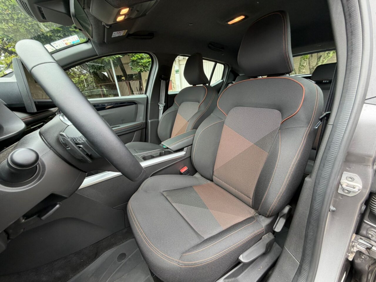 O interior utiliza bancos em tecido, console elevado e acabamento com predominância de tons escuros.