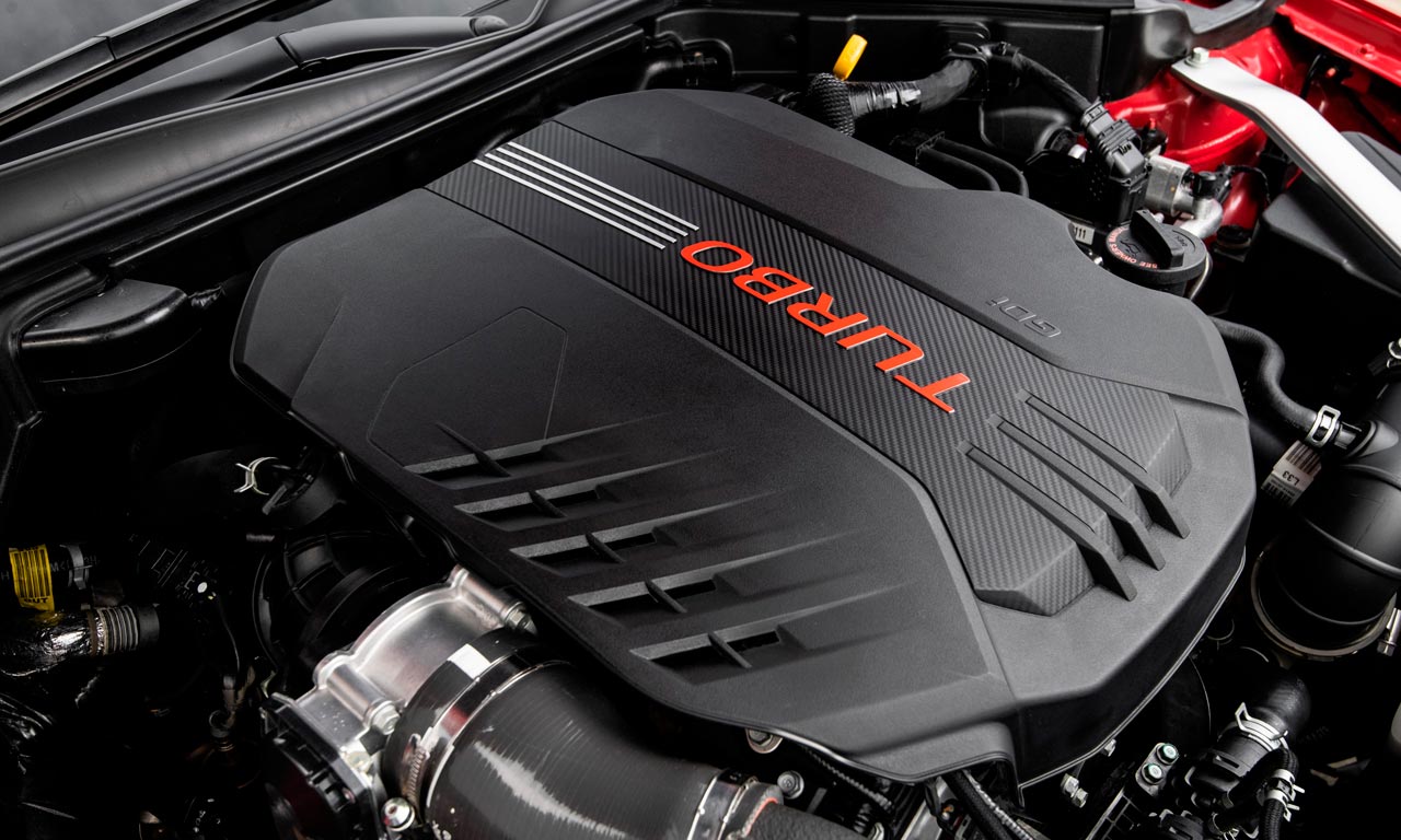 O Stinger de “entrada” troca o motor 2.0 turbo de 258 cv por um novo 2.5 turbo de 304 cv e 43 kgfm de torque. Segundo dados de fábrica, esta configuração é capaz de acelerar de 0 a 96 km/h em 5,2 segundos. Na versão topo de linha, GT, o Stinger mantém o motor 3.3 V6 biturbo, agora com 373 cv (3 cv extras) e os mesmos 52 kgfm de torque do modelo anterior – para chegar aos 96 km/h, bastam 4,7 segundos.