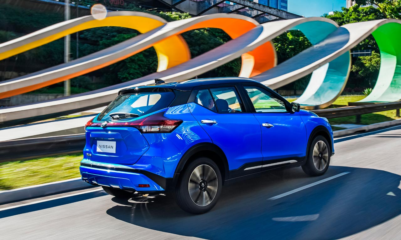 A linha 2022 do Nissan Kicks é vendida em 3 opções de acabamento (Sense, Advance e Exclusive), duas de câmbio (manual e automático do tipo CVT) e uma de motor (1.6 16V flex). Sem reajustes em relação à gama 2021, preços partem de R$ 90.390 e chegam a R$ 116.390 – clique aqui para conferir preços e equipamentos por versão.