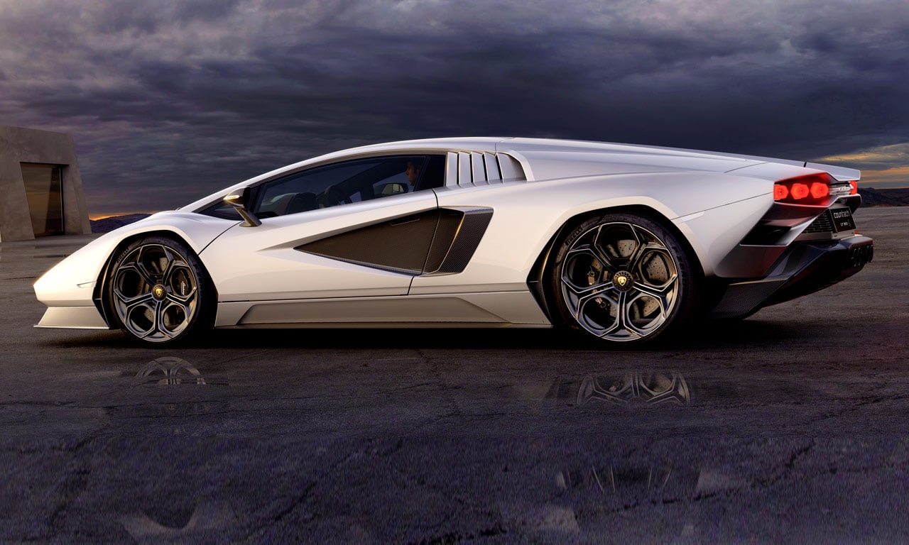 O Lamborghini Countach LPI 800-4 2022 é uma visão do Countach original pensada para o século 21 e tem como base a estrutura do Aventador e a mecânica híbrida do Sián. As linhas remetem ao Countach original, com destaque para as formas retangulares para faróis e entradas de ar do para-choque dianteiro. O modelo mantém a forma de cunha e as portas estilo tesoura do cupê original.