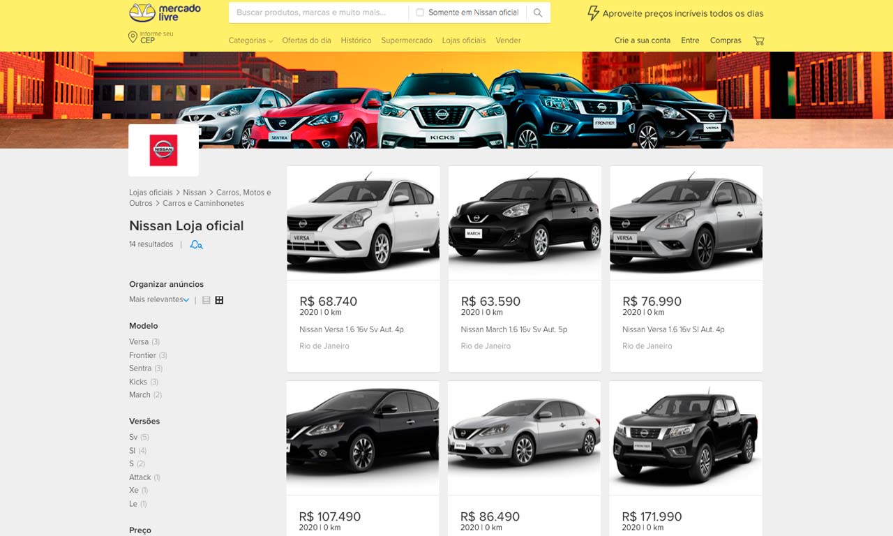 A Nissan anuncia a abertura de uma loja virtual no Mercado Livre a partir deste mês. Na plataforma de compras online, serão oferecidos todos os modelos da marca, do hatch March à picape Frontier.