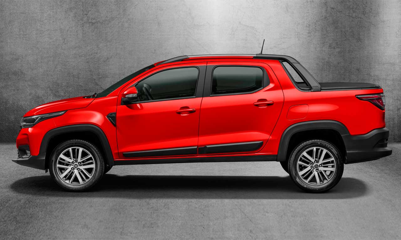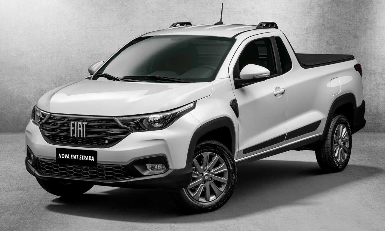 A segunda geração da Fiat Strada está pronta para chegar ao mercado. Originalmente previsto para esta terça (7), o lançamento da nova picape foi postergado para quando o avanço do novo coronavírus estiver controlado. Porém, a marca revelou todas as informações técnicas e versões desta que é a maior renovação do utilitário desde o lançamento original, em 1998. A marca sempre apostou em soluções pioneiras para sua representante entre as “picapinhas”. Foi assim com a cabine estendida (1999), cabine dupla em uma picape compacta (2009) e terceira porta (2013). Agora, o chamariz é a adoção da cabine dupla de quatro portas, solução inexistente nas rivais diretas (VW Saveiro e Chevrolet Montana). A opção de cabine estendida deixa de existir, uma vez que a cabine simples ganhou espaço extra atrás dos bancos. Todas estas mudanças foram possíveis com a adoção de uma nova plataforma, chamada pela marca de MPP, que mistura elementos estruturais de Argo, Mobi e Fiorino. A suspensão dianteira (McPherson) adota novas molas, amortecedores e barra estabilizadora. Já a traseira mantém o eixo rígido com molas semielípticas da antecessora. A picape usa maior quantidade de aços de alta resistência, nova arquitetura eletrônica, controles de estabilidade e tração de série para toda a gama e assistente de saída em rampas. Na comparação com a antiga versão Freedom cabine dupla, a nova geração está 42 mm mais comprida (4.480 mm ao todo), 68 mm mais larga (1.732) e 19 mm maior na distância entre eixos (2.737). A altura, por sua vez, foi reduzida em 5 mm (1.575). O volume da caçamba na versão cabine dupla cresceu consideravelmente – passou de 640 para 844 litros. Um dos trunfos para isso foi a realocação do estepe, que passou da caçamba para a parte inferior do compartimento de carga. Outra novidade é o sistema que alivia o peso de abertura da tampa traseira, como na rival Saveiro. A capacidade de carga (que inclui ocupantes) da nova Strada foi mantida em 650 kg. Na cabine, todo o painel adota uma evolução das peças vistas no Mobi. O volante baseia-se no do subcompacto, mas possui base reta e revestimento em couro na versão topo de linha. Os bancos são exclusivos da picape e possuem opção de airbag lateral (que protege tórax e cabeça, segunda a marca). Também inédita é a capacidade para cinco ocupantes (ante quatro na antecessora), com apoio de cabeça e cinto de segurança de três pontos para todos e ganchos Isofix (como determina a lei). A central multimídia é inédita na gama da marca e traz um exclusivo sistema de espelhamento sem fio para celulares (Android Auto e Apple CarPlay). A tela tátil possui 7 polegadas e opção de configurações personalizáveis para diferentes usuários. Mecanicamente, a nova Strada mantém o conhecido motor 1.4 EVO flex de 88/85 cv (E/G) de potência e 12,5/12,4 kgfm de torque como única opção para a versão de entrada (voltada ao trabalho). Novidade é a adoção do 1.3 Firefly de Argo e Cronos, com 109/101 cv (E/G) de potência e 14,2/13,7 kgfm de torque. Para ambas, a única opção de câmbio é o manual de cinco marchas. A marca trabalha em uma opção automática do tipo CVT para lançamento em 2021. Com o adiamento do lançamento, a Fiat revelou apenas as versões e equipamentos. Preços só deverão ser anunciados na véspera da chegada às concessionárias, ainda sem data definida. Versões e equipamentos:Strada Endurance 1.4 (cabine simples e cabine dupla)Equipamentos de série: controles de estabilidade e tração, assistente de saída em rampas, assistência hidráulica da direção, ar-condicionado, volante ajustável em altura, computador de bordo, protetor de caçamba e rodas de aço (pneus 195/65R15).Strada Freedom 1.3 (cabine simples e cabine dupla)Equipamentos de série: itens da versão Endurance + assistência elétrica da direção, banco do motorista com ajuste de altura, travas, vidros e retrovisores elétricos, tela de 3,5 polegadas no quadro de instrumentos, monitoramento da pressão dos pneus, rádio com USB, volante multifuncional, rodas de liga leve de 1 polegadas, faróis de neblina, para-choque dianteiro, maçanetas e retrovisores na cor da carroceria. Strada Volcano 1.3 (cabine dupla)Equipamentos de série: itens da versão Freedom + vidros elétricos traseiros, central multimídia, segunda entrada USB, câmera de ré, sensor de estacionamento, volante em couro, faróis em LED (fachos alto e baixo), capota marítima, rack de teto, barra de proteção na caçamba (santantônio) e pneus de uso misto (205/60R15). Fotos: Divulgação