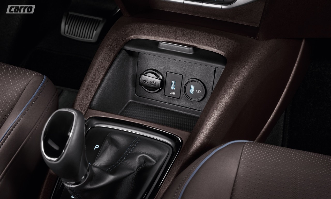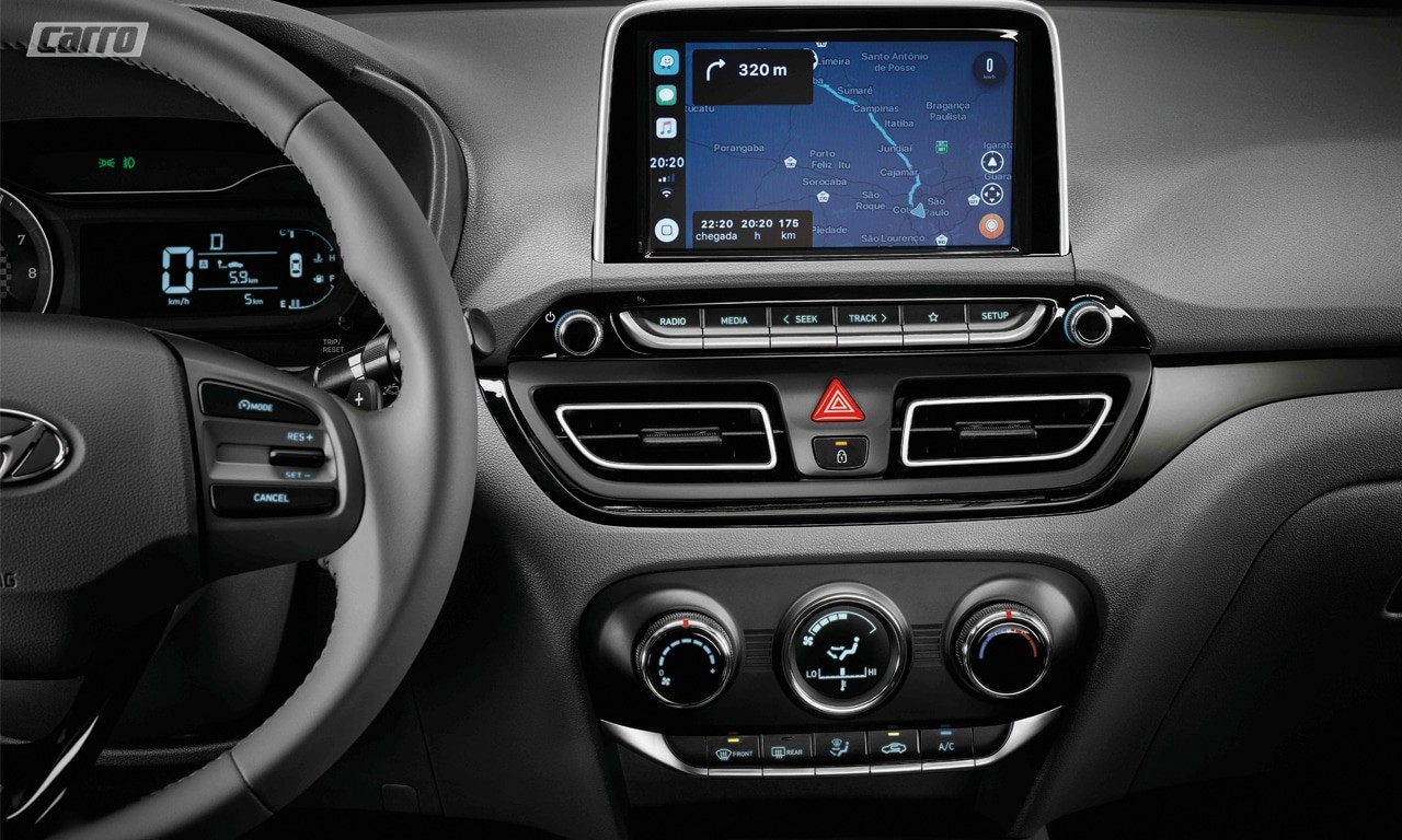 O multimídia BlueMedia está em todas as versões, menos na Sense, e vem sempre acompanhada de duas portas USB: uma para conectividade (Android Auto e Apple CarPlay) e outra exclusiva para carregamento rápido do celular, como em um carregador ligado à tomada na parede.