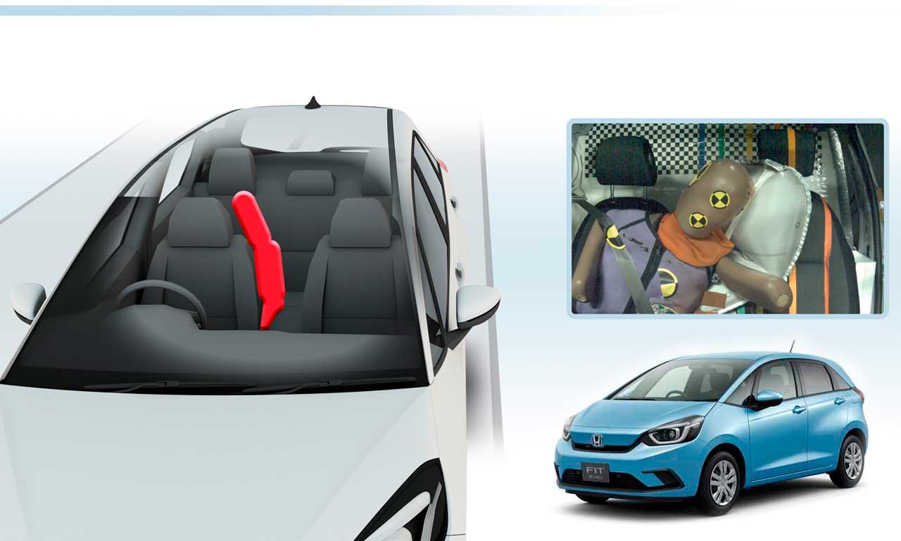 A quarta geração do Honda Fit inova ao trazer um airbag central dianteiro. Alojado na parte posterior do banco do motorista, o dispositivo de segurança (quando acionado) tem como objetivo evitar o choque direto entre condutor e passageiro dianteiro em impactos laterais.