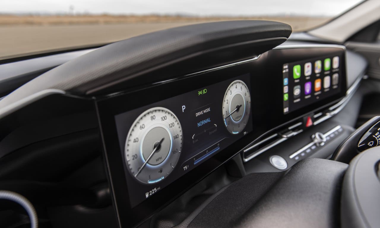 A tela fica posicionada no mesmo conjunto do painel digital de 10,25″, em um arranjo semelhante ao adotado pelos Mercedes-Benz. Um novo opcional disponível para o Elantra é a Digital Key, que permite ao condutor dispensar a chave original, que é substituída com um cartão com tecnologia NFC ou pelo smartphone.
