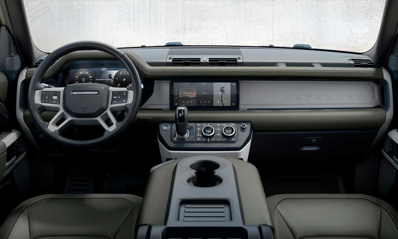 Toda a linha Defender vem de série com suspensão a ar, tração 4×4 permanente, quadro de instrumentos digital com tela de 12,3 polegadas, câmeras 360, monitoramento da pressão dos pneus, bancos dianteiros com ajustes elétricos, ar-condicionado de duas zonas, assistente de manutenção de faixa, frenagem autônoma de emergência, faróis e lanternas em LED e assistente de farol alto automático, entre outros.