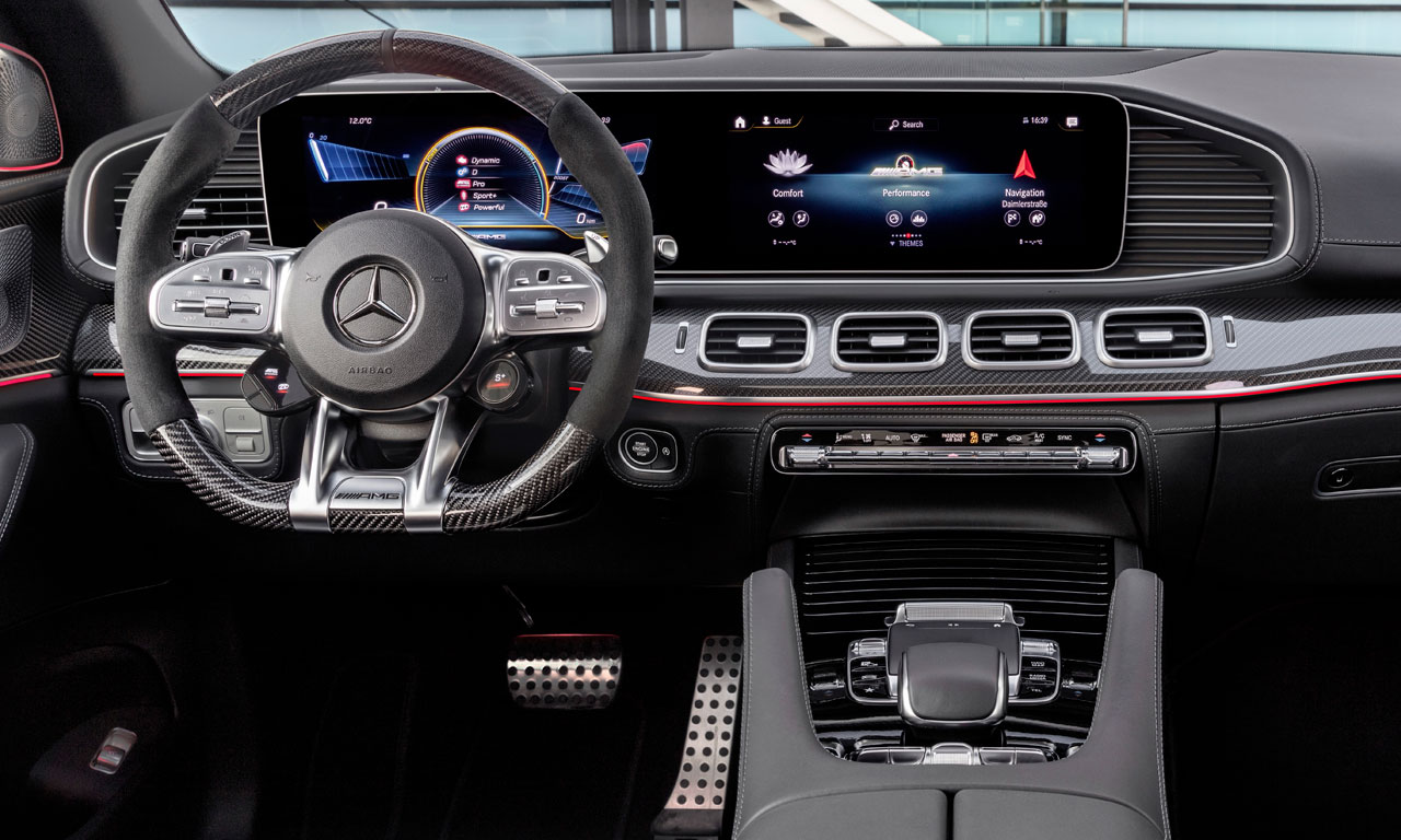 De série, o Mercede-AMG GLE G3 S Coupé traz central multimídia MBUX com controles por gestos e voz, chave presencial, sistema de navegação GPS com realidade aumentada, sistema de câmeras 360°, bancos dianteiros com ventilação e ajustes elétricos com memória, teto solar elétrico, head-up-display, ar-condicionado digital de 4 zonas, carregador de celular por indução, controle de cruzeiro adaptativo com função stop & go, assistente ativo de direção e sensor de pontos cegos.