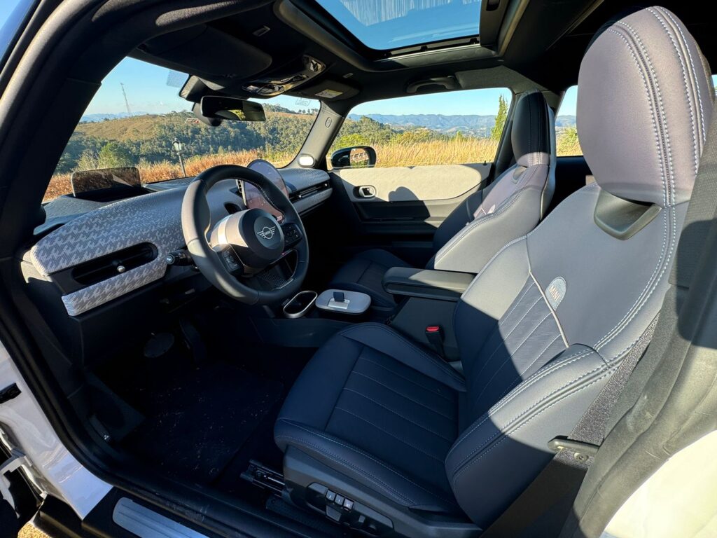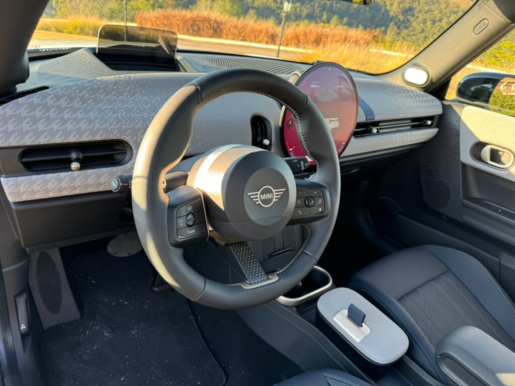 Por dentro o Mini Cooper S traz o mesmo perfil de poucos botões em um tabelier com trama grossa que é de origem vegetal. O Mini Operating Modes com 6 modos incluindo o Personal onde pode baixar imagem e colocar na Tela de OLED de 24cm. Abaixo, o console com botão de ignição e controle de modos de condução são fiéis à proposta original do Mini. Além do botão de ignição, há o freio de estacionamento, assistente de estacionamento e “experience modes”.