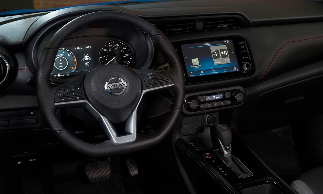 Por dentro, o novo Nissan Kicks nacional deverá ter apenas atualização na central multimídia e nova padronagem dos revestimentos – o console central elevado e o freio de estacionamento eletromecânico, novidades do Kicks estadunidense, não serão adotados por aqui, já que serão mantidos os freios traseiros a tambor (na América do Norte, são a disco nas quatro rodas).