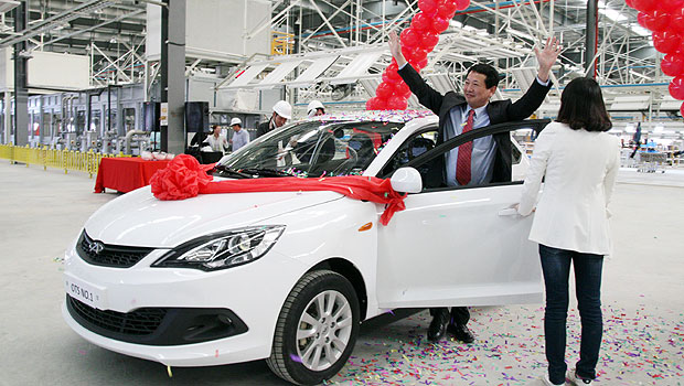 O primeiro modelo da chinesa Chery produzido no Brasil ficou pronto. A unidade em questão, um Celer considerado protótipo pré-série, foi produzido em regime OTS (off line tool sample) e de forma completamente manual, portanto ainda sem utilizar as máquinas da linha de produção.