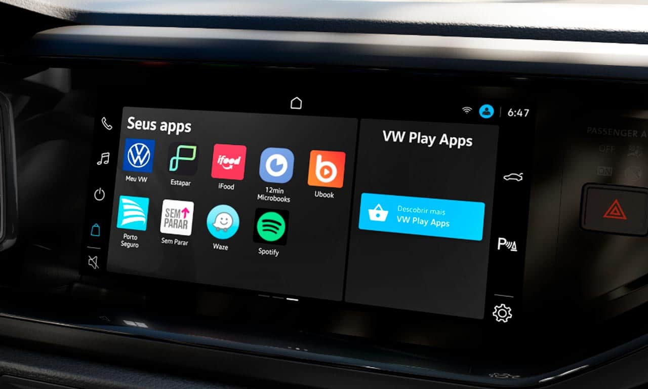 Desenvolvida na América Latina, a central multimídia VW Play possui tela de 10,1 polegadas e interface com loja virtual para download de aplicativos, como Waze, iFood e Spotify. Em breve, o equipamento terá disponível o app Get In, para reservas de mesas em restaurantes, e MobiMax, que permite assistir televisão ao vivo (com o veículo parado, como determina a lei).