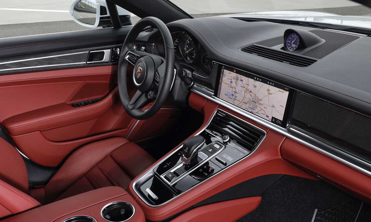 Na cabine, a central multimídia passa a ser compatível com Apple CarPlay sem o uso de fios e traz novos serviços conectados. O sistema de manutenção ativa de faixa e leitor de placas passa a vir de série em toda a gama. Como opcional, há controle de cruzeiro adaptativo, assistente de visão noturna, faróis em LED Matrix e head-up display. O Panamera atualizado deverá estrear no Brasil até o fim de 2021.