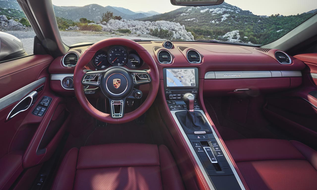 A carroceria pode vir nas cores prata (GT Silver Metallic), preto (Deep Black Metallic) e branco (Carrara White Metallic), enquanto o arco do para-brisa vem sempre na cor preta. A capota de lona na cor vermelha traz o logotipo 25 e combina com o interior todo em couro no mesmo tom, como no primeiro Boxster.