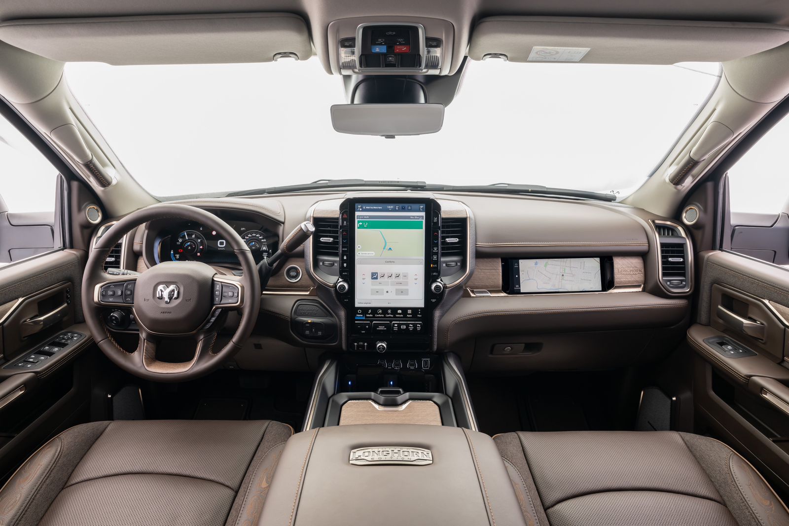 No interior, a linha mantém o padrão já conhecido, com foco em acabamento e tecnologia. A versão 3500 Limited Longhorn segue como topo da gama, com bancos em couro com acabamento exclusivo, aplicação de madeira na cabine e retrovisor digital com múltiplas visualizações.