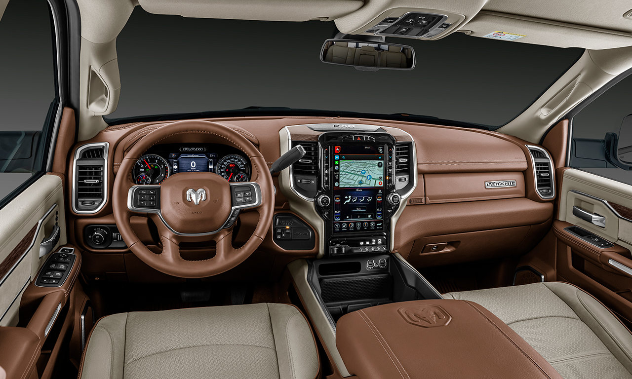 A picape de grande porte possui motor 6.7 Cummins turbodiesel de seis cilindros em linha, entregando 365 cv de potência e 110,7 kgfm de torque. Ela é capaz de rebocar até 7,8 toneladas e apresenta capacidade de carga de 1.088 kg. Com equipamentos como central multimídia com tela sensível ao toque de 12 polegadas, câmera 360°, câmera de caçamba e sistema de som premium Alpine, a Ram 2500 Laramie é vendida por R$ 397.990.