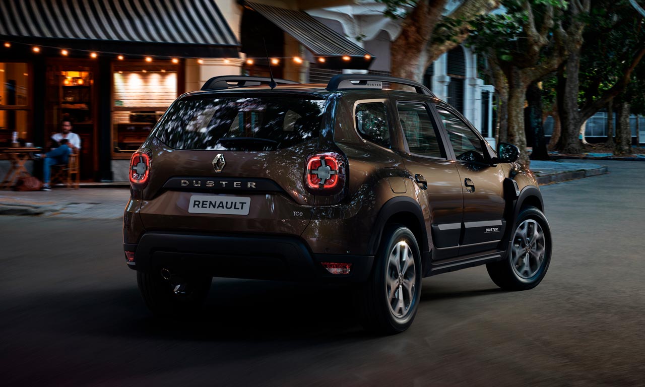 Além do novo motor, o Duster 2023 traz novo acabamento na cor preta para a moldura frontal, retrovisores e barras de teto nas versões Intense e Iconic. A topo de linha (disponível com motor 1.6 ou 1.3) também recebe de série molduras ao redor das caixas de roda e bancos em couro sintético.