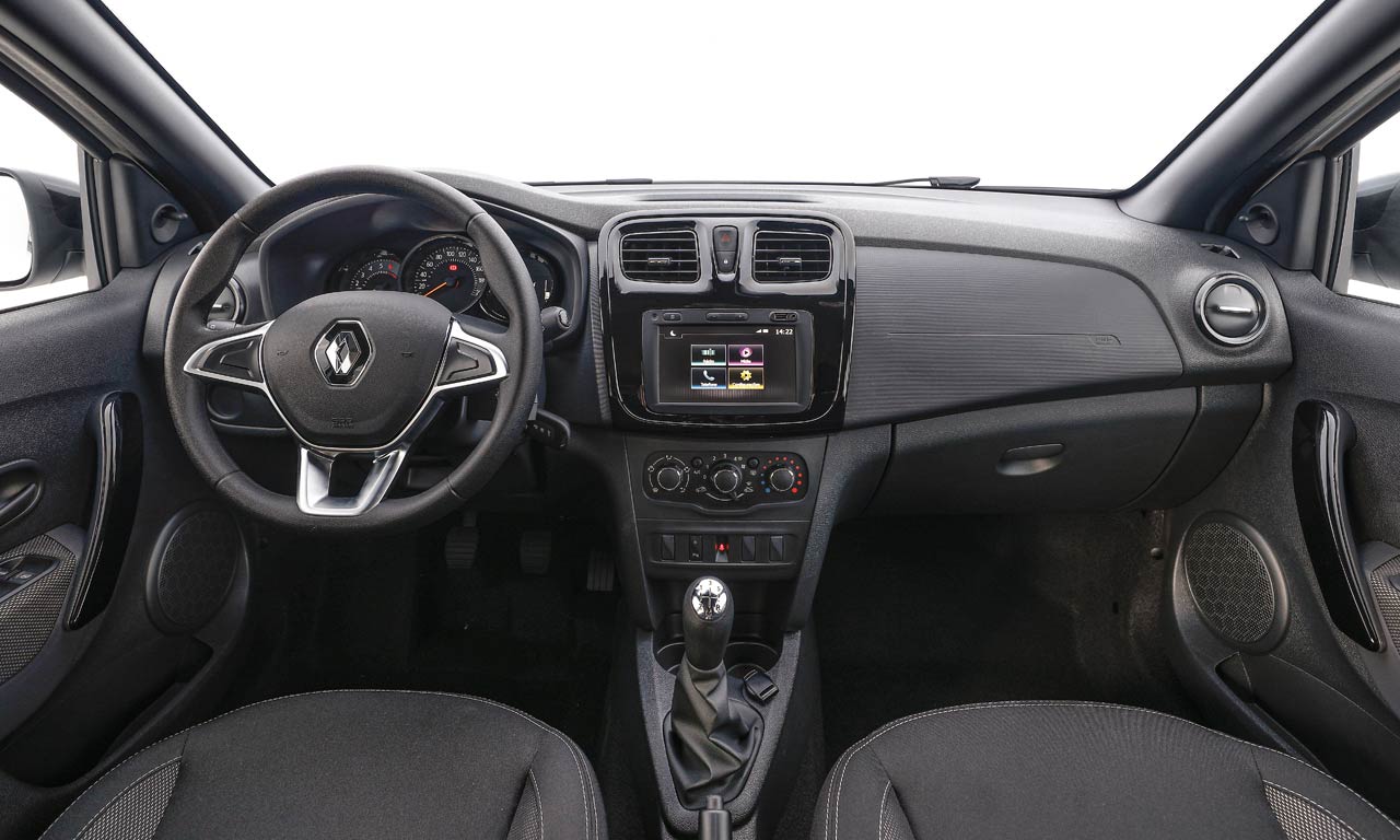 Do lado de dentro, a ambientação e o nível de equipamentos são os mesmos do Sandero Zen, sem volante em couro, vidros elétricos na traseira e retrovisores elétricos. De série, a série especial S Edition traz quatro airbags, direção com assistência eletro-hidráulica, computador de bordo, alarme, vidros elétricos dianteiros e travas elétricas, chave canivete, central multimídia Media Evolution de 7” (com Android Auto e Apple CarPlay) e sensor de estacionamento.