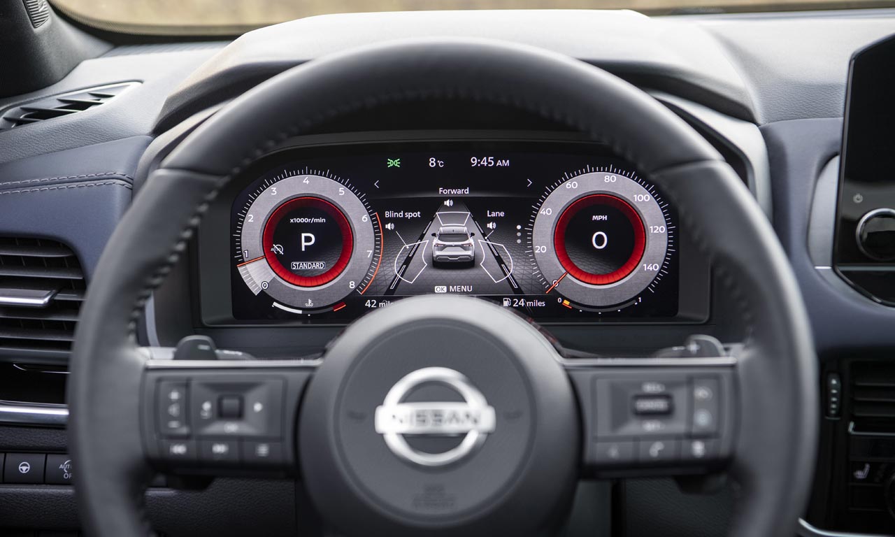 A cabine ‘bebe’ da mesma fonte do X-Trail 2021, com central multimidia com tela “flutuante” de 9” (e conexão sem fio para Apple CarPlay), quadro de instrumentos 100% digital de 12,3”, novo volante de três raios e alavanca de câmbio com acionamento eletrônico. O Qashqai traz ainda head-up display de 10,8”, conectividade 4G com função de comandos remotos pelo celular e múltiplas entradas USB-A e USB-C.