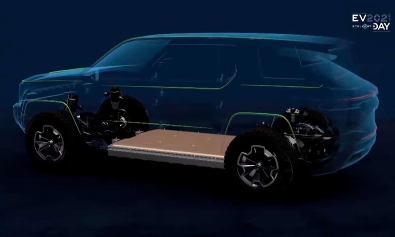 A base STLA Large é uma das quatro plataformas modulares para arquiteturas totalmente elétricas que o grupo empregará em seus futuros modelos, além de TLA Small, STLA Medium e STLA Frame.