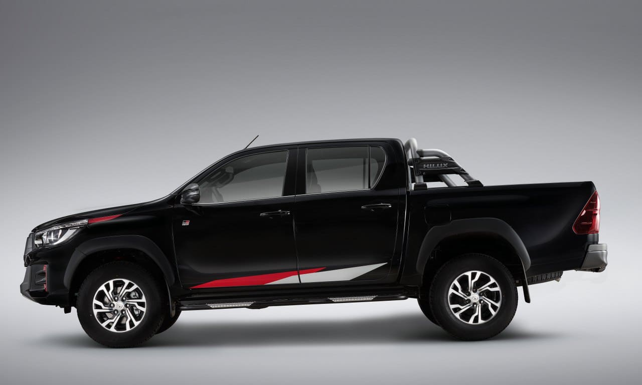 No visual, além das faixas laterais e do teto e capô na cor preta, a Hilux esportiva traz rodas exclusivas de 17″ e o interior com detalhes na cor vermelha.