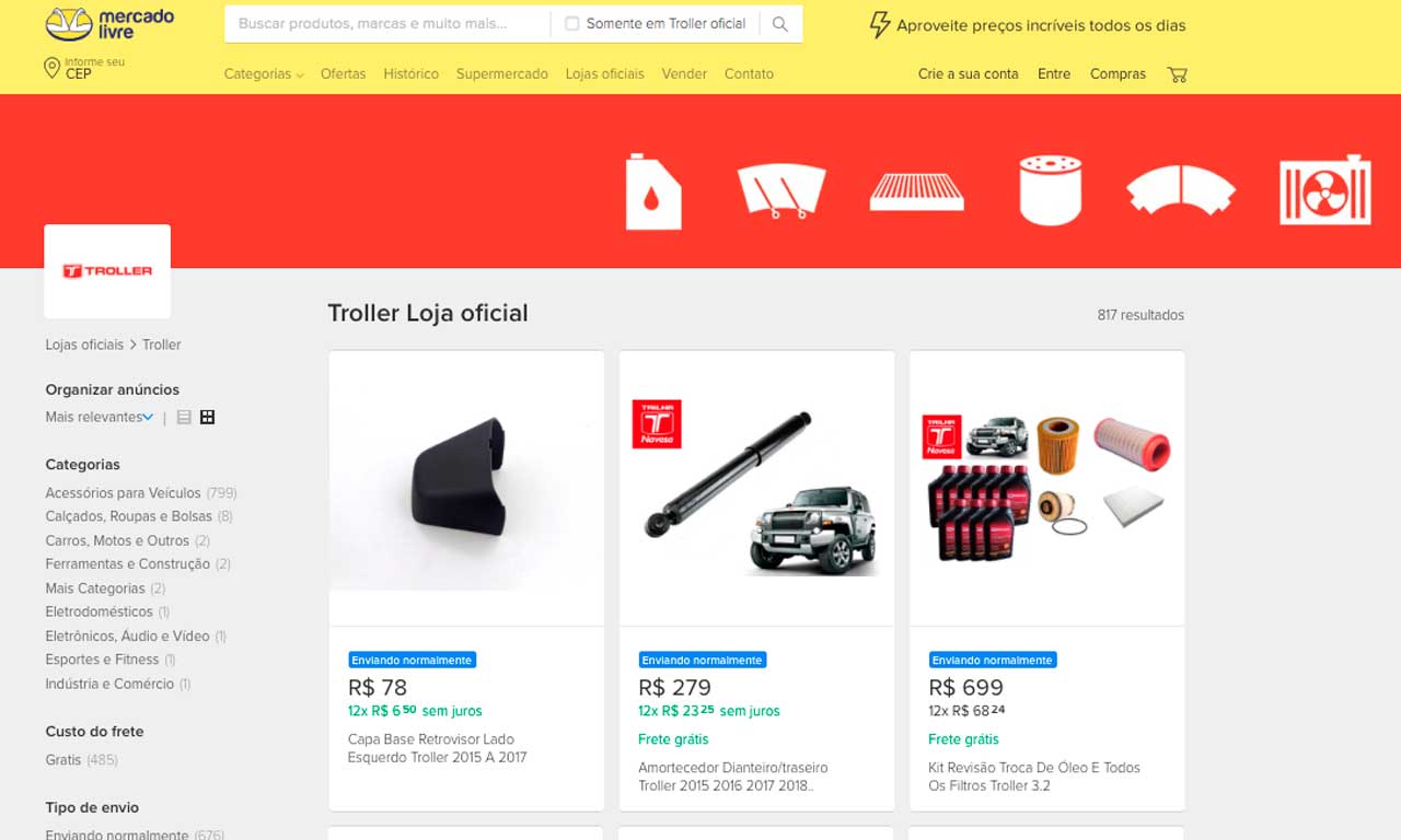 De olho no aumento da demanda por compras online nos últimos meses, a Troller inaugura uma loja oficial no Mercado Livre. No site, os clientes da marca podem comprar peças e acessórios off-road originais.