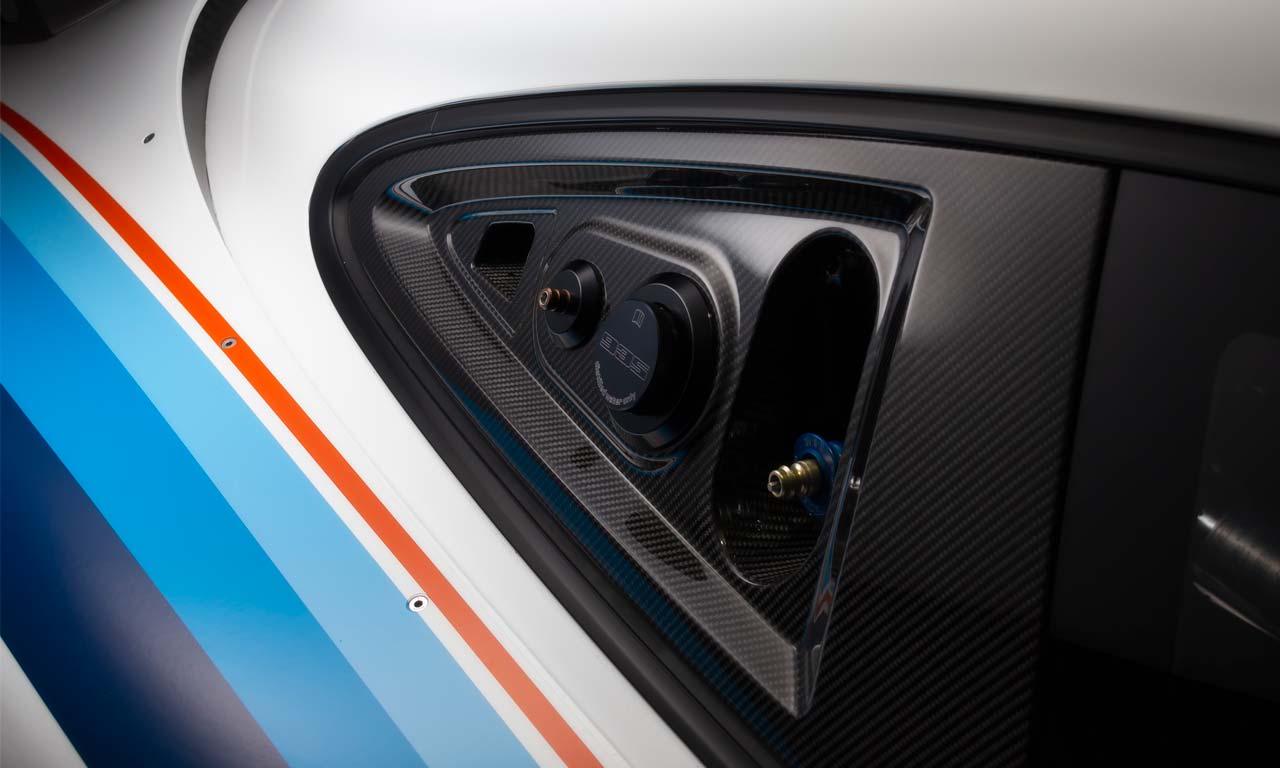 Curiosamente, o modelo traz ar-condicionado de série. Outros equipamentos incluem sistema de monitoramento da pressão dos pneus, freios ABS, controles de tração e estabilidade (com possibilidade de desativação total) e cronômetro. Para aliviar peso, a bateria é de íons de lítio (composto mais leve que o tradicional, de chumbo-ácido).