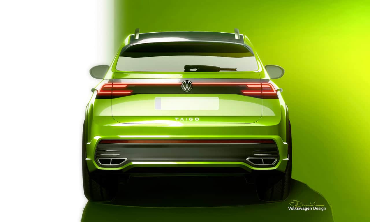 Os esboços divulgados pela marca mostram uma possível versão R-Line do VW Taigo, com direito a para-choques exclusivos e mais esportivos, filete iluminado na grade, rodas de maior diâmetro e saída quádrupla de escapamento. O modelo dos desenhos exibe ainda retrovisores, aerofólio e teto na cor cinza, além do inédito tom verde para a carroceria.