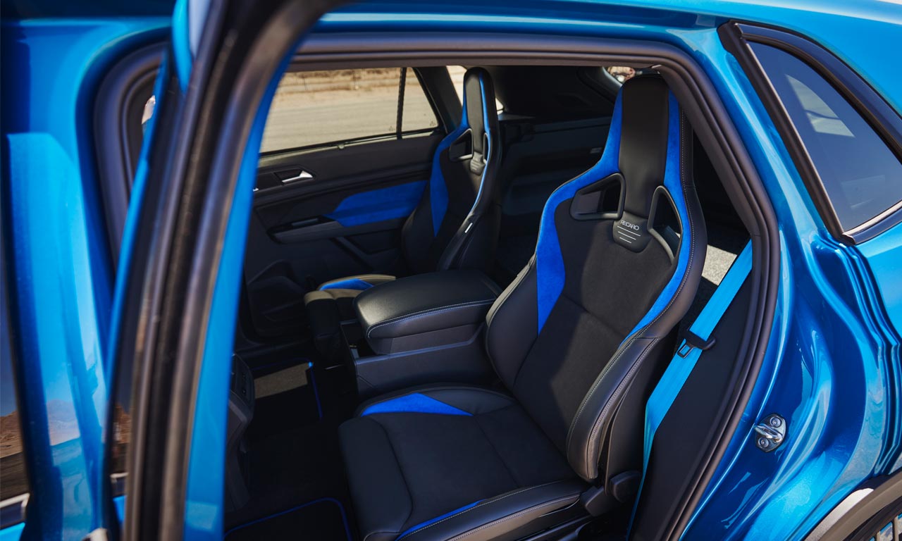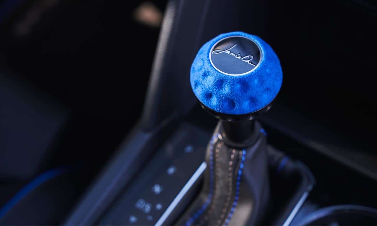 Do lado de dentro, os bancos convencionais foram substituídos por quatro bancos individuais Recaro, do tipo concha, com elementos na cor azul (mesmo tom usado nos cintos de segurança). O volante traz acabamento em couro perfurado, enquanto a manopla de câmbio possui estilo “bolinha de golfe”.