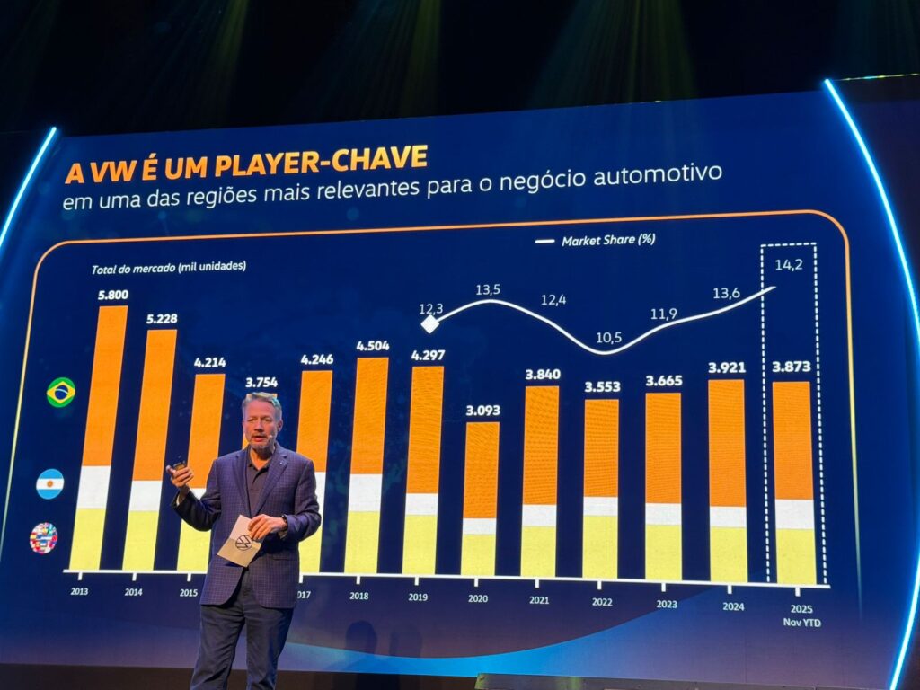 A Volkswagen também confirmou um novo produto baseado na plataforma MQB37 com motorização híbrida que será produzido em São Bernardo do Campo. “Será um carro bem completo com ADAS e conjunto híbrido pois queremos democratizar o acesso à eletrificação dos nossos produtos”, disse Ciro Possobom, CEO da Volkswagen.